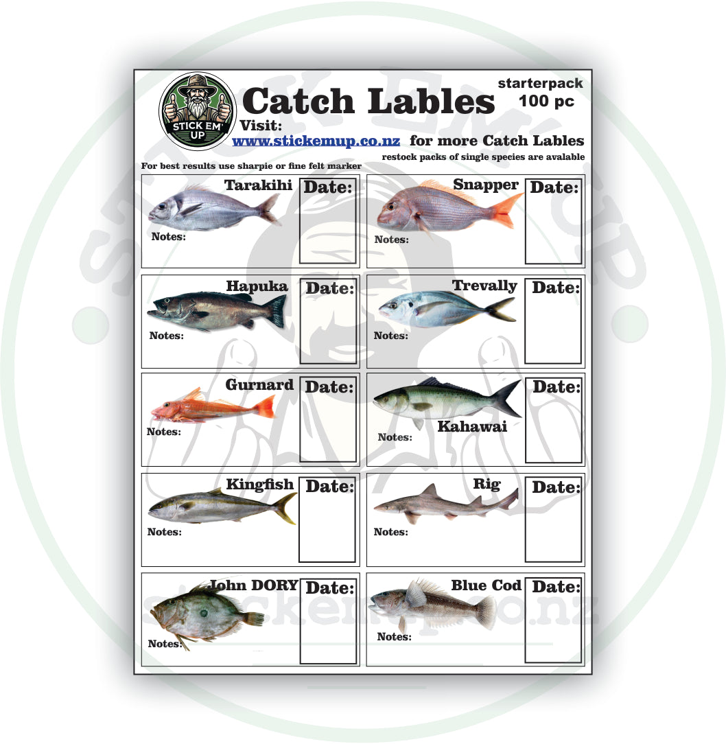 Introducing the 100 Starter Multi-specie Labels! A must-have for every fisherman looking to organize their freezer and keep their catch fresh and labeled! These fishing catch labels are lightweight, durable, and designed to make it easy to identify exactly what fish you've stored and when it was packed. With ample space to write the catch date, these labels help you stay organized and ensure you enjoy your catch at its best. Perfect for avid fishers, these labels are a practical addition to any freezer!