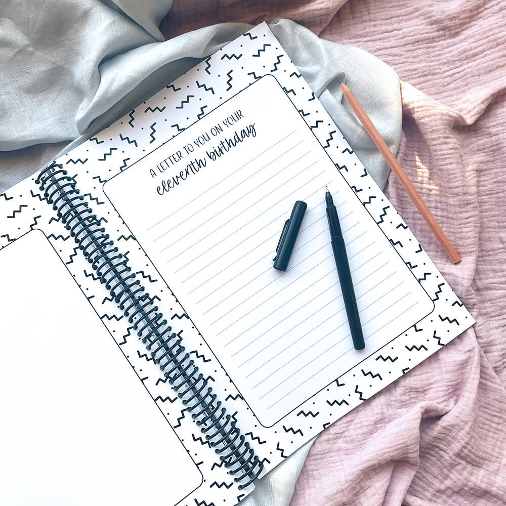 Each year features a dedicated page for recording their favourite things, proudest achievements, and your happiest shared memories - plus two full photo pages and a space for writing them a heartfelt letter on each birthday.