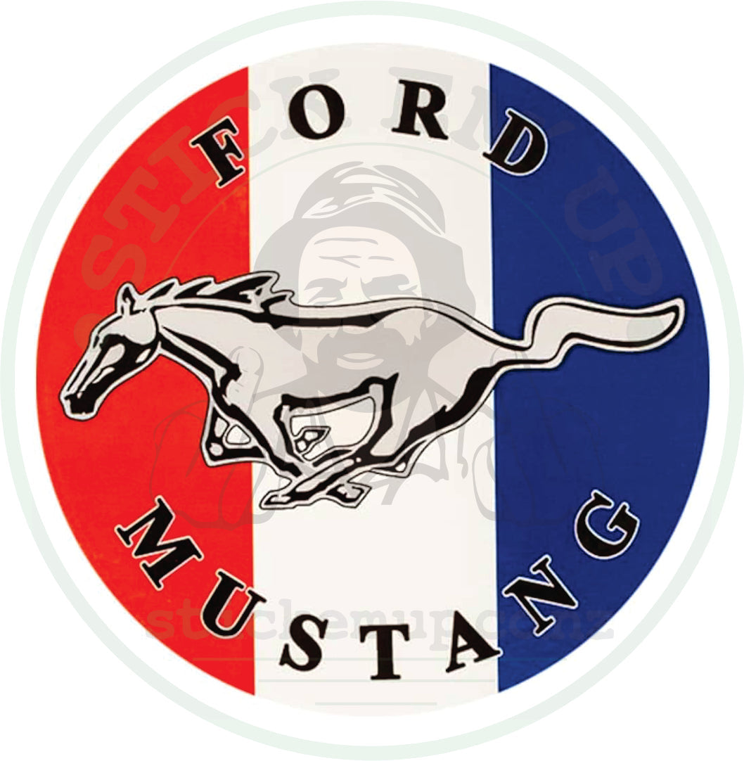 Celebrate American muscle with the Mustang Heritage Sticker. Featuring the iconic running horse over a bold red, white, and blue tri-bar design, this decal is perfect for Ford lovers and classic car enthusiasts. The timeless circular layout gives it a vintage badge feel while staying sharp and bold.
