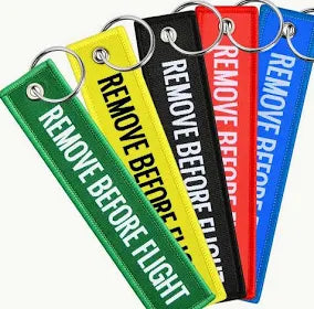 Keep it classic, keep it loud. These Remove Before Flight tags aren’t just for planes—they’re for keys, bags, or anything that needs that bold “hands off” statement. Durable embroidered finish, heavy-duty keyring, and available in a range of standout colors (green, yellow, black, red, blue).