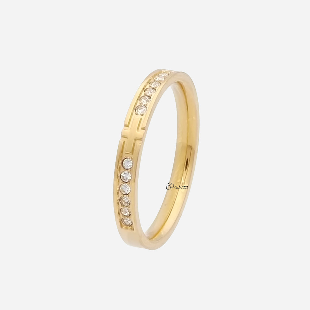 Expertly crafted from high-quality stainless steel with 18K gold plated, this cross ring features a stunning design with a cross in the centre and 6 dazzling CZs on each side. Its durable material and elegant details make it a perfect symbol of faith and style.